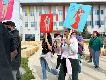 At the International Women's Day March where they passed out hundreds of zines, Les Maestres
